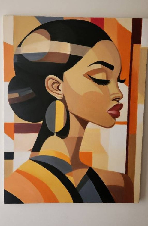 این تابلو رنگ روغن دستساز با طراحی مدرن و الهامبخش از زیبایی زنانه، فضای خانه یا محل کار شما را به یک گالری هنری تبدیل میکند. استفاده از رنگهای گرم مانند نارنجی، زرد و قهوهای در کنار خطوط هندسی و سایهروشنهای دقیق، جلوهای مدرن و چشمگیر ایجاد کرده است.